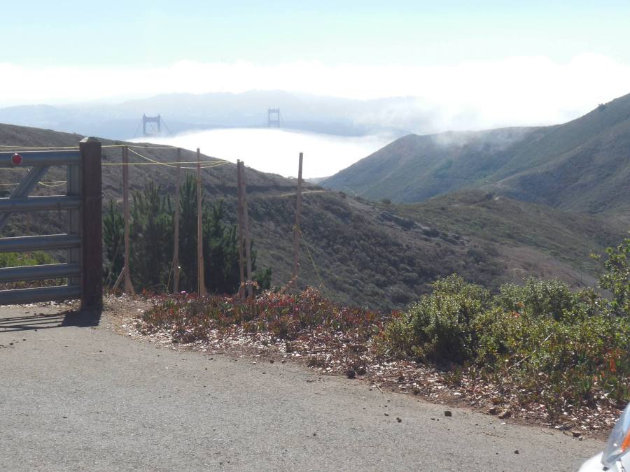 We had our choice of two vacant lots, one higher, the other one with a better view. We could see the top of the Golden Gate bridge because we were above it. We could see the city, all the sailboats, and Alcatraz Island. The fog gave way in time for the Blue Angels. It was loud but not as loud as if we’d been sitting down below in San Francisco.